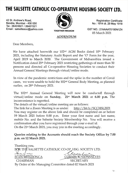 Salsette AGM, 21st Mar, 2021